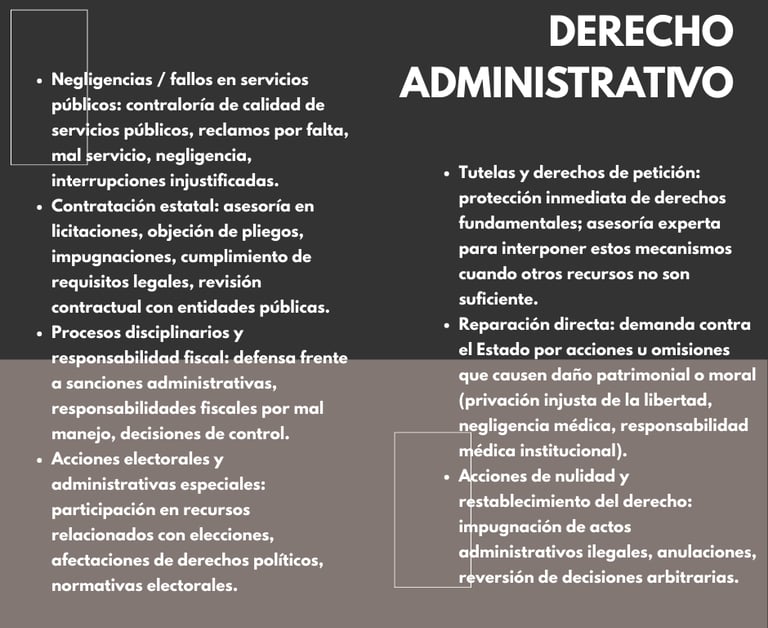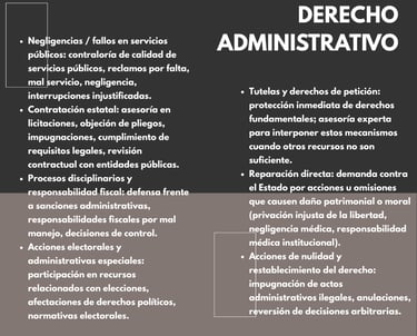 Administrativo: representar a ciudadanos y empresas frente a actuaciones arbitrarias del Estado, defendiendo su patrimonio y sus derechos fundamentales.